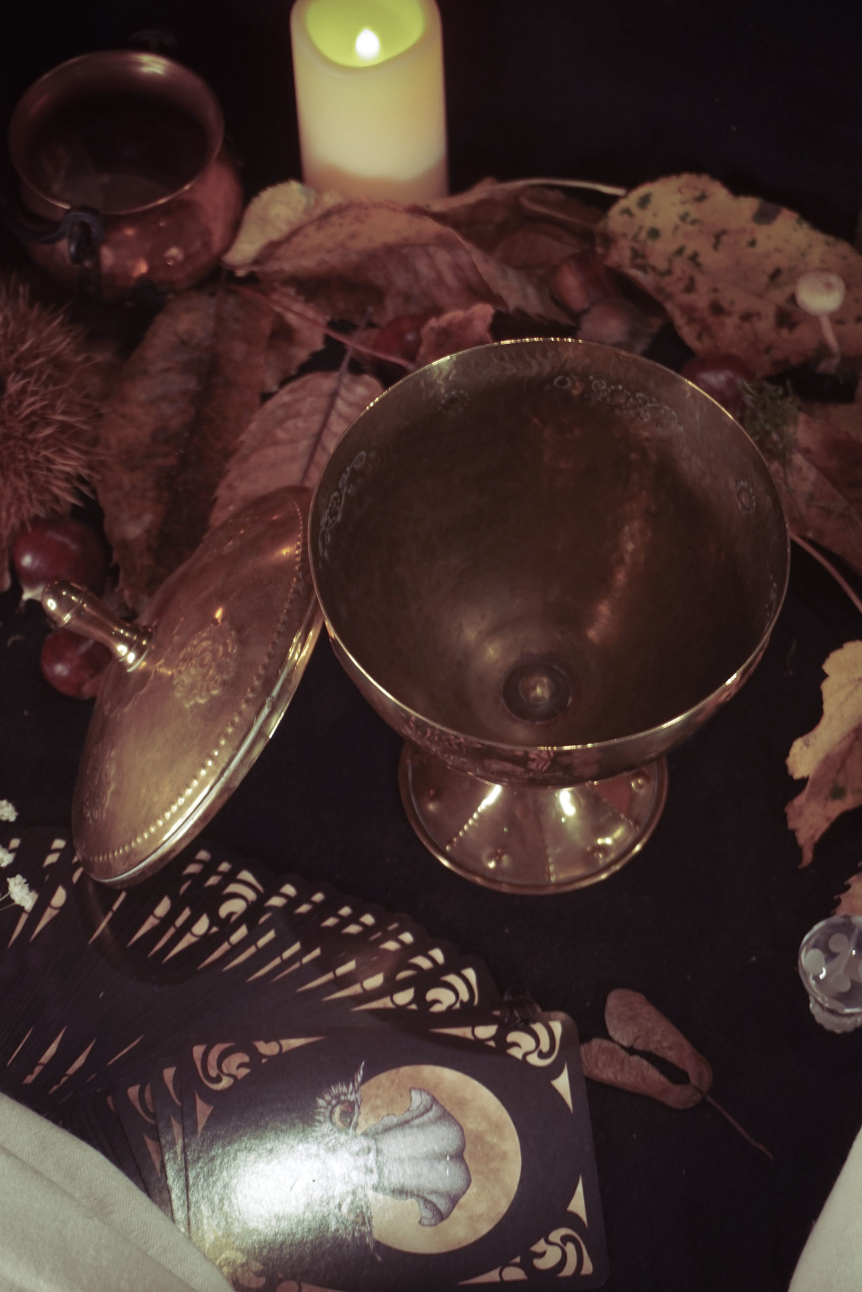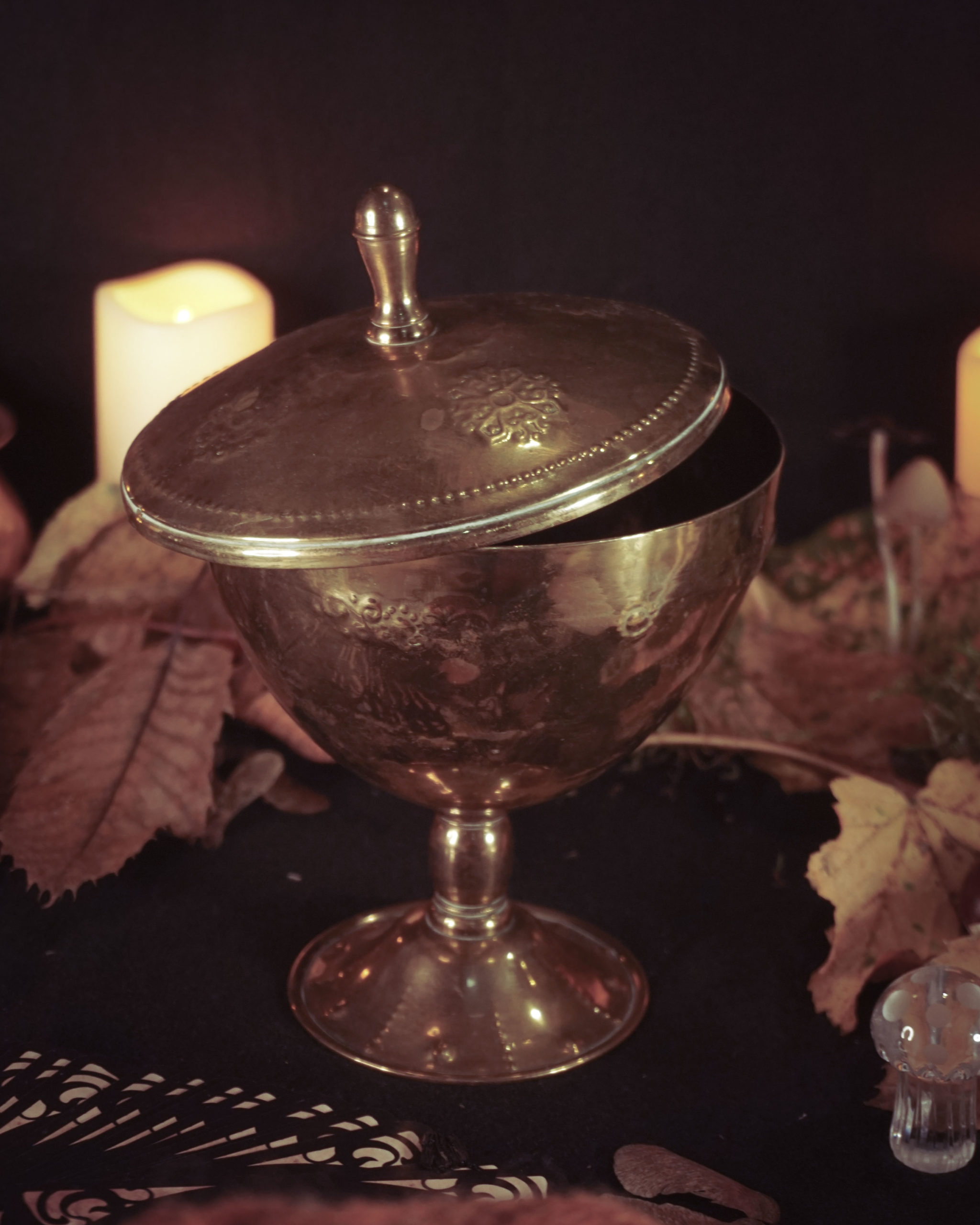 Un très grand calice avec son couvercle. Le calice est un objet en lien avec l’eau et le sacré. Il peut être utile tant en sorcellerie traditionnelle, qu’en sorcellerie de campagne ou en magie cérémonielle. Il est en lien avec l’élément de l’eau et est utilisé tant pour les offrandes, les libations que pour contenir vos potions. Avec son couvercle, il pourra également vous servir d’encensoir.