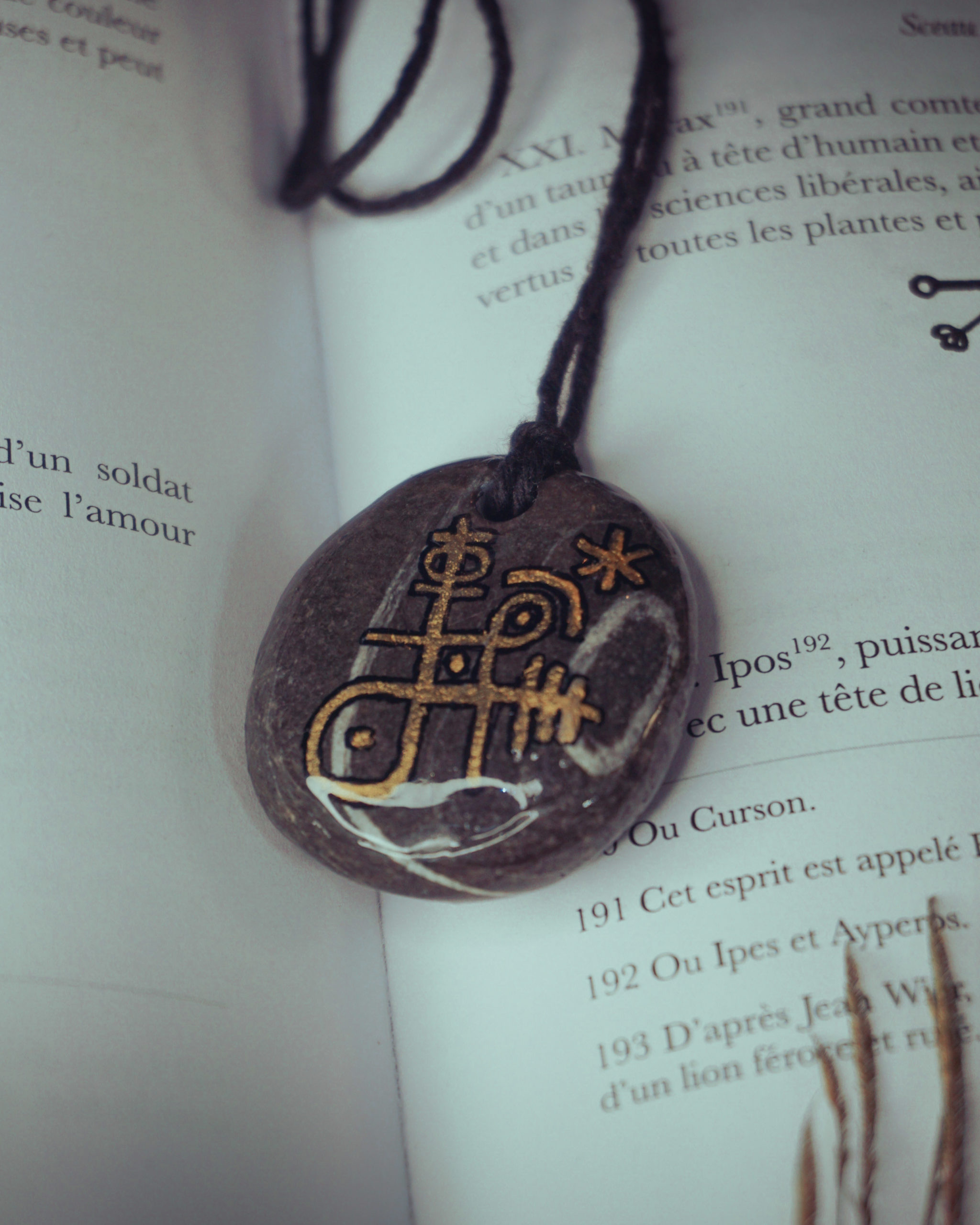Ce talisman est confectionné sur une pierre récoltée par mes soins. Elle est ensuite trouée et peinte à la main, ainsi que résinée afin de perdurer dans le temps. Chaque talisman est un objet unique et consacré en énergie. Il est associé à un cordon noir réglable qui peut-être changé si vous le souhaitez.