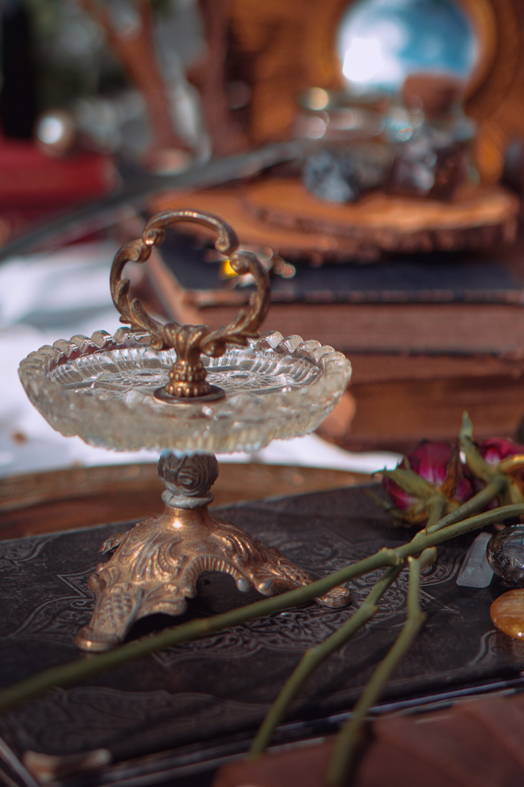 Le cristal pour recevoir, le bronze pour ancrer, cette coupe réunit en elle deux matières chargées de sens. Sa coupelle taillée aux reflets irisés repose sur un pied tripode finement ouvragé, surmonté d’une anse aux courbes baroques. Une pièce rare, à la fois outil rituel et objet de collection, pour celles et ceux qui ne font pas de compromis sur la beauté de leur pratique.