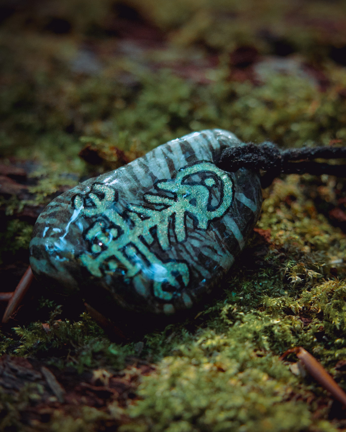 Pierre, aquarelle, résine, cordon en coton